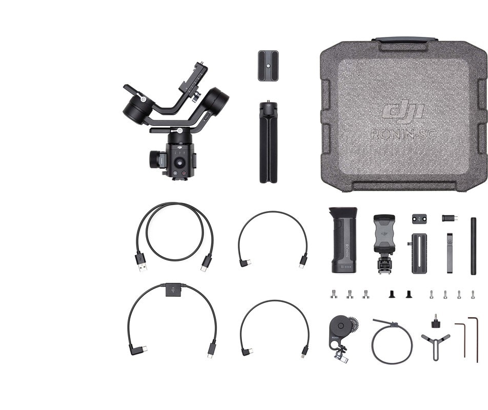 DJI Ronin-SC Pro Combo. Tipo: Estabilizador manual para cámara, Material: Aluminio, Magnesio, Color del producto: Negro. Rango de vibración angular: -0,02 - 0,02°, Rango controlable de inclinación: -90 - 145°, Rango controlable de alabeo: -30 - 30°. Tecnología de batería: Polímero de litio, Capacidad de batería: 2450 mAh, Voltaje de la pila: 7,2 V. Peso: 1,1 kg, Ancho: 165 mm, Profundidad: 150 mm. Cables incluidos: USB
