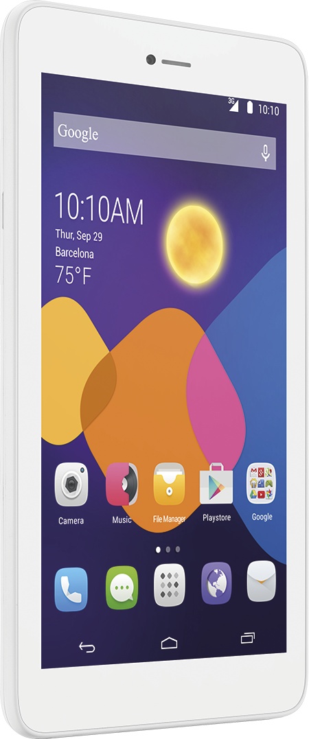 La nueva Alcatel Pixi 3 (7) 3G, funciona con sistema operativo Android Kit Kat 4.4, tiene una pantalla WSVGA 7.0”, un procesador Dual-Core 1.3 GHz , una batería de 2820 mah, 2 cámaras (trasera de 2 mp y frontal de 0.3mp), Wi-Fi y 3G.