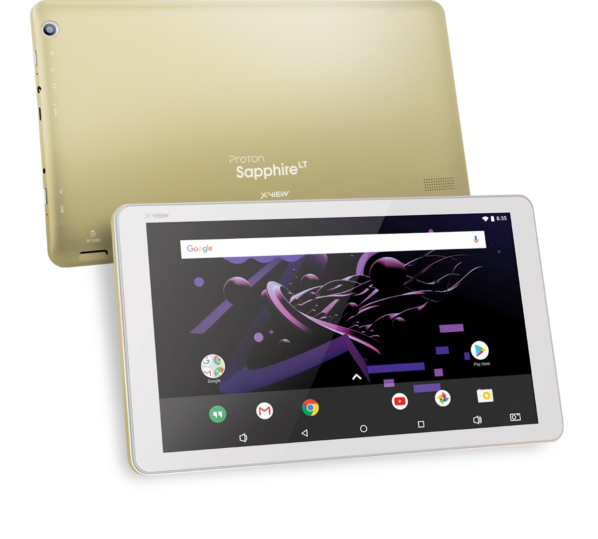 X-View Sapphire LT © Tablet Android 10 pulgadas Especificaciones Técnicas: ?Sistema Operativo: Android 7.1 ?Diseño Ultra-Slim ?Terminaciones Metal Case Color Oro ?Pantalla: 10"" Widescreen ?Resolución: HD 1024 x 600 px ?Procesador: RK3126C 1.2 GHz ?Memoria RAM: 1 GB DDR3 ?Almacenamiento interno: 16GB ?Memoria expandible a 32 GB ?Batería: Recargable Poli Litio Alta Duración 5000 mAh ?Conexión: Micro USB 2.0, WI-FI, Bluetooth ?Camara dual 2.0 y 0.3 mp 13. ?Lectura multimedia La caja incluye: - Tablet 10 pulgadas - Cable USB - Manual de instrucciones en español