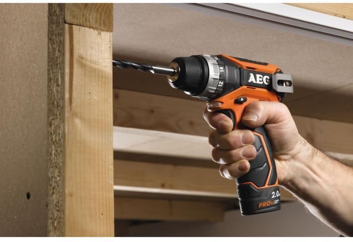 Taladro atornillador - 12 V - 32 Nm - 2 velocidades - 350 y 1500 rpm - 0,9 kg - Corte: 171 mm - Con indicador de carga - Suministrado con clip para cinturón, 2 baterías Pro litio 2 Ah y cargador