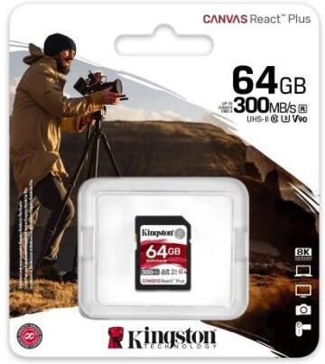 Tarjeta de memoria SD Canvas React Plus La tarjeta SD Canvas React Plus SD de Kingston-#39 ofrece las velocidades requeridas por las cámaras profesionales para cineastas que graban videos 4K/8K y capturan fotos de alta resolución. Las tarjetas SD Canvas React Plus se basan en los últimos estándares UHS-II y los requisitos de las clases de velocidad más altas U3 y V90, lo que permite disparos continuos a velocidades de escritura de hasta 260 MB/s*. Desatraillar