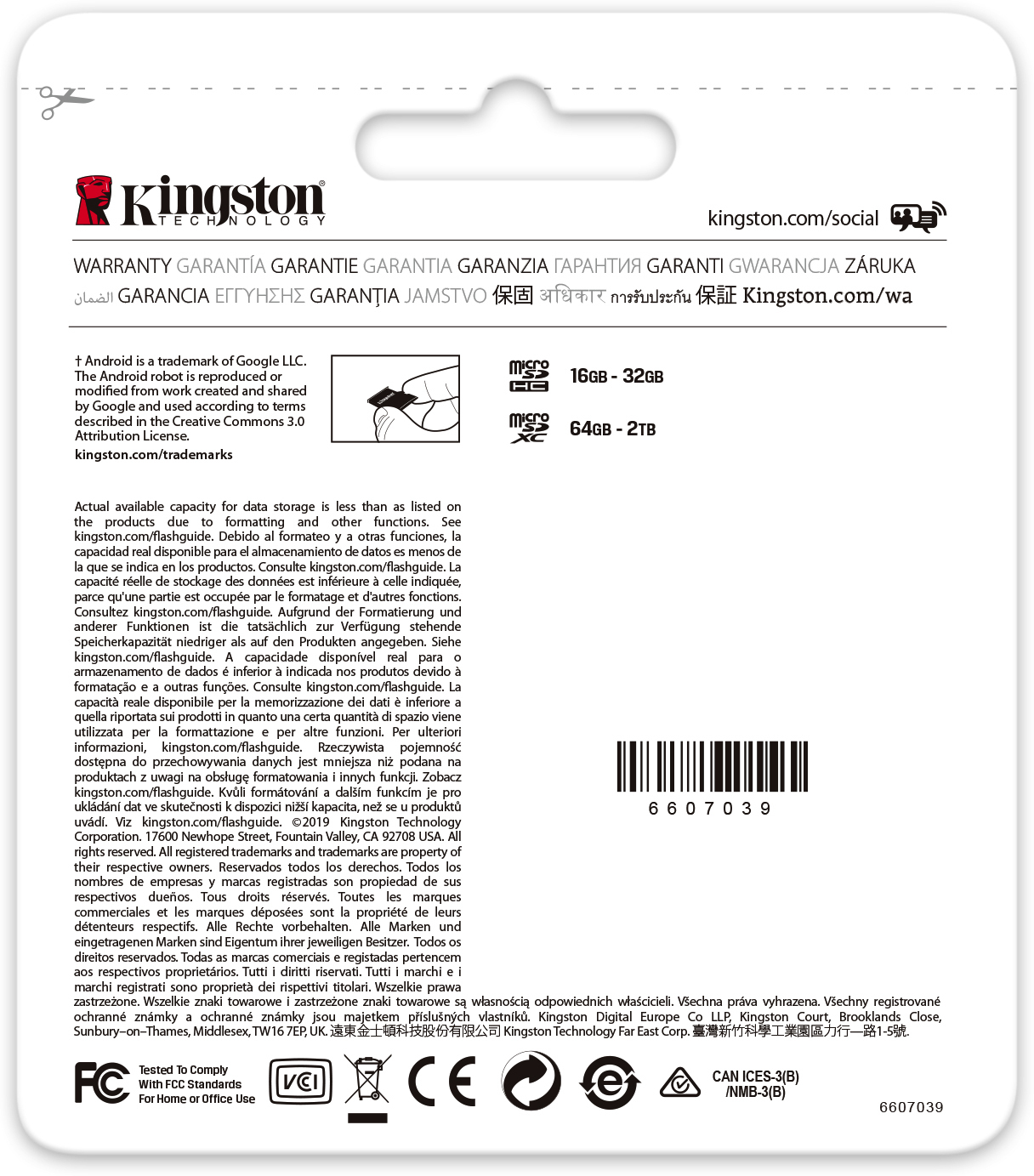 Kingston Technology Canvas Go! Plus. Capacidad: 128 GB, Tipo de tarjeta flash: MicroSD, Clase de memoria flash: Clase 10, Tipo de memoria interna: UHS-I, Velocidad de lectura: 170 MB/s, Velocidad de escritura: 90 MB/s, Clase de velocidad UHS: Class 3 (U3), Clase de velocidad de vídeo: V30. Funciones de protección: Resistente a golpes, Resistente a la temperatura, Resistente a las vibraciones, Resistente al..., Color del producto: Negro