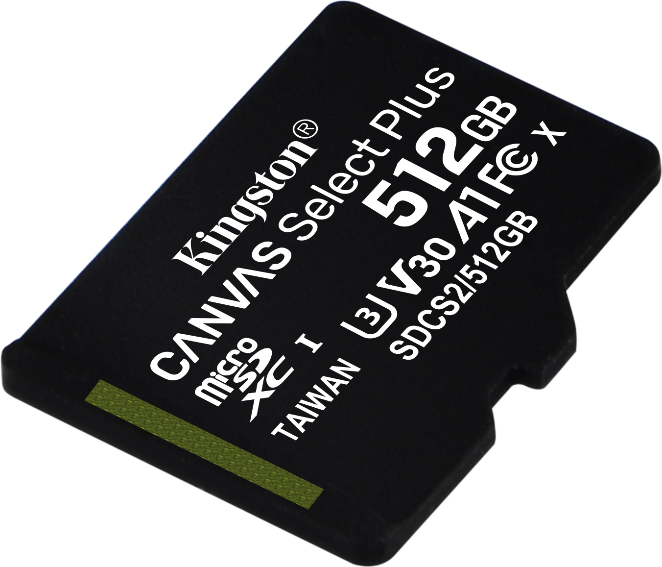 Kingston Technology Canvas Select Plus. Capacidad: 512 GB, Tipo de tarjeta flash: MicroSDXC, Clase de memoria flash: Clase 10, Tipo de memoria interna: UHS-I, Velocidad de lectura: 100 MB/s, Velocidad de escritura: 85 MB/s, Clase de velocidad UHS: Class 3 (U3), Clase de velocidad de vídeo: V30. Funciones de protección: Resistente a golpes, Resistente a las vibraciones, A prueba de rayos X, Color del producto: Negro