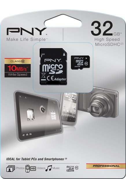 PNY MicroSD. Capacidad: 32 GB, Tipo de tarjeta flash: MicroSD, Clase de memoria flash: Clase 10, Velocidad de lectura: 20 MB/s, Velocidad de escritura: 15 MB/s. Color del producto: Negro