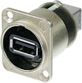 Cambiador de género reversible USB (tipo A y B), carcasa -D de níquel. Due to the rising digitisation the interface problems between audio/video networks, IT equipment, MP3 camcorders, etc. increase.\nNeutrik's reversible USB gender changer, mounted in the standardized D-shape housing, solves this problem.\n\nReversible USB genderchanger (type A and B), Nickel D-housing\n\nFeatures & Benefits\n\n• Ideal for audio networking and integration of computerbased equipment into audio systems \n• USB gender changer type A-B (B-A) \n• Reversible insert offering type A or B on front or rear end \n• Universally accepted standard D-shape housing