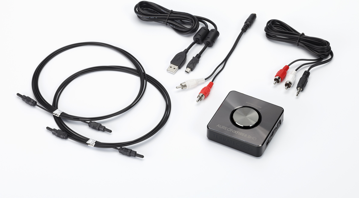 Terratec Aureon XFire 8.0 HD. Canales de salida de audio: 7.1 canales, Calidad de audio: 24 bit, Línea de salida, relación señal/ruido: 108 dB. Interfaz de host: USB. Longitud de cable: 1,8 m, Cables incluidos: RCA,S/PDIF,USB. RAM mínima: 1024 MB, Procesador mínimo: 2.0 GHz. Peso: 98 g, Ancho: 80 mm, Profundidad: 80 mm