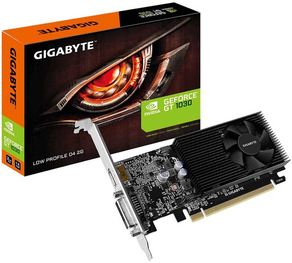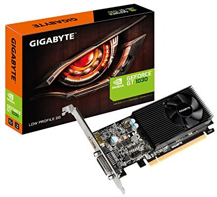 Alimentado por GeForce GT 1030 integrado con 2 GB DDR4 64 bits de memoria de perfil bajo con 150 mm de longitud de tarjeta overclocking de un clic a través del motor gráfico Aorus Core reloj de núcleo: 1417 MHz/base: 1177 MHz en modo OC Boost: 1379 MHz/base: 1151 MHz en modo de juego..Alimentado por GeForce GT 1030,Integrado con memoria DDR4 de 64 bits,Diseño de perfil bajo con tarjeta de 150 mm de longitud,Overclocking con un solo clic a través de AORUS Graphics Engine,Boost: 1417 MHz/base: 1177 MHz en modo OC, Boost: 1379 MHz/base: 1151 MHz en modo de juegoEspecificaciones: .Marca: Gigabyte Technology . | Factor de forma: Perfil bajo . | Peso del producto: 231 g . | Potencia eléctrica: 500 . | Resolución máxima: 4096 x 2160 . | Coprocesador gráfico: NVIDIA GeForce GTX 1050 . | Dimensiones del producto: 15.01 x 6.91 x 1.5 cm; 231.33 gramos . | Tipo de RAM de gráficos: DDR SDRAM . | Número de puertos USB 2.0: 1 . | Velocidad del reloj de GPU: 1417 MHz . | Capacidad de la memoria RAM: 2 GB . | Velocidad de reloj de memoria: 2100 MHz . | Número de modelo del producto: GV-N1030D4-2GL . | Interfaz de la tarjeta gráfica: PCI-E . | Conexiones: DVI . | Gráfica Series: GF 1030 Series . | Suministro de energía al sistema mínimo: 300 W . | Profundidad: 14,7 mm . | Altura: 68,9 mm . | Ancho: 149,9 mm . | Versión HDMI: 2.0b . | Número de puertos HDMI: 1 . | Especificación de DVI: DVI-I (Dual-Link) . | Funciones del chipset: NVIDIA GameWorks, GPU Boost 3.0 . | Resolución máxima: 7680 x 4320 pixel . | Interfaz de memoria: 64 bits . | Versión de PCIe: 3.0 . | Soporte OpenGL: 4.5