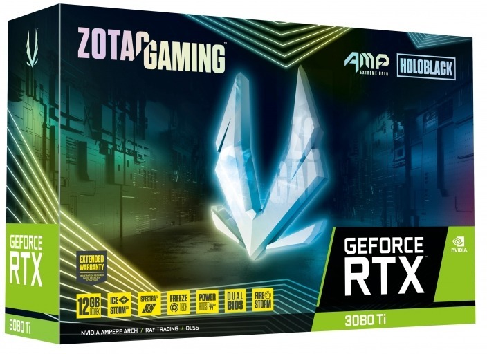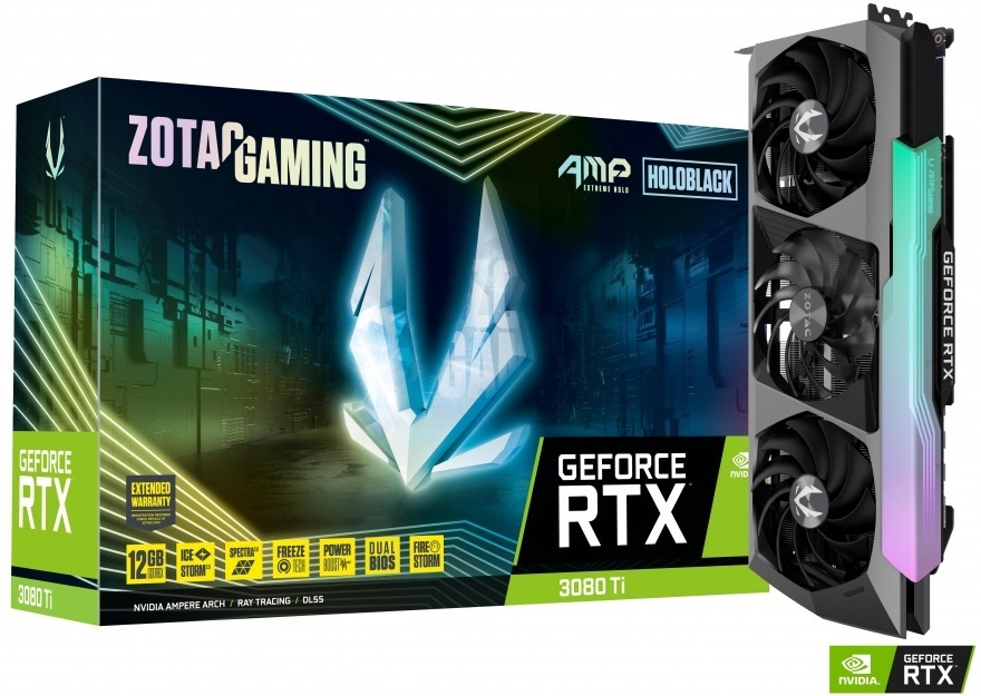 Zotac GAMING GeForce RTX 3080 Ti AMP Extreme Holo. Familia de procesadores de gráficos: NVIDIA, Procesador gráfico: GeForce RTX 3080 Ti. Capacidad memoria de adaptador gráfico: 12 GB, Tipo de memoria de adaptador gráfico: GDDR6X, Ancho de datos: 384 bit. Máxima resolución: 7680 x 4320 Pixeles. Versión DirectX: 1?2 Ultimate, Versión OpenGL: 4.6. Tipo de interfaz: PCI Express x16 4.0. Tipo de enfriamiento: Activo, Número de ventiladores: 3 Ventilador(es), Iluminación de color: Multi.ZOTAC GAMING GEFORCE RTX 3080 Ti AMP Extreme HOLO 12GB GDDR6X, 384 bit, 1785/19000, HDCP, Three DP, HDMI, Premium Pack,Velocidad 1785/19000 MHz,12 Gb Gddr6x,Velocidad 1785/19000 MHz,Triple ventiladorEspecificaciones: .Marca: ZOTAC GAMING . | Fabricante: ?Zotac Gaming . | Potencia eléctrica: ?800 vatios . | Coprocesador gráfico: ?NVidia GeForce® RTX 3080 Ti . | Tipo de RAM de gráficos: DDR2 SDRAM . | Velocidad del reloj de GPU: 1785 MHz . | Número de modelo del producto: ?ZT-A30810B-10P . | Interfaz de la tarjeta gráfica: ?PCI-Express x16