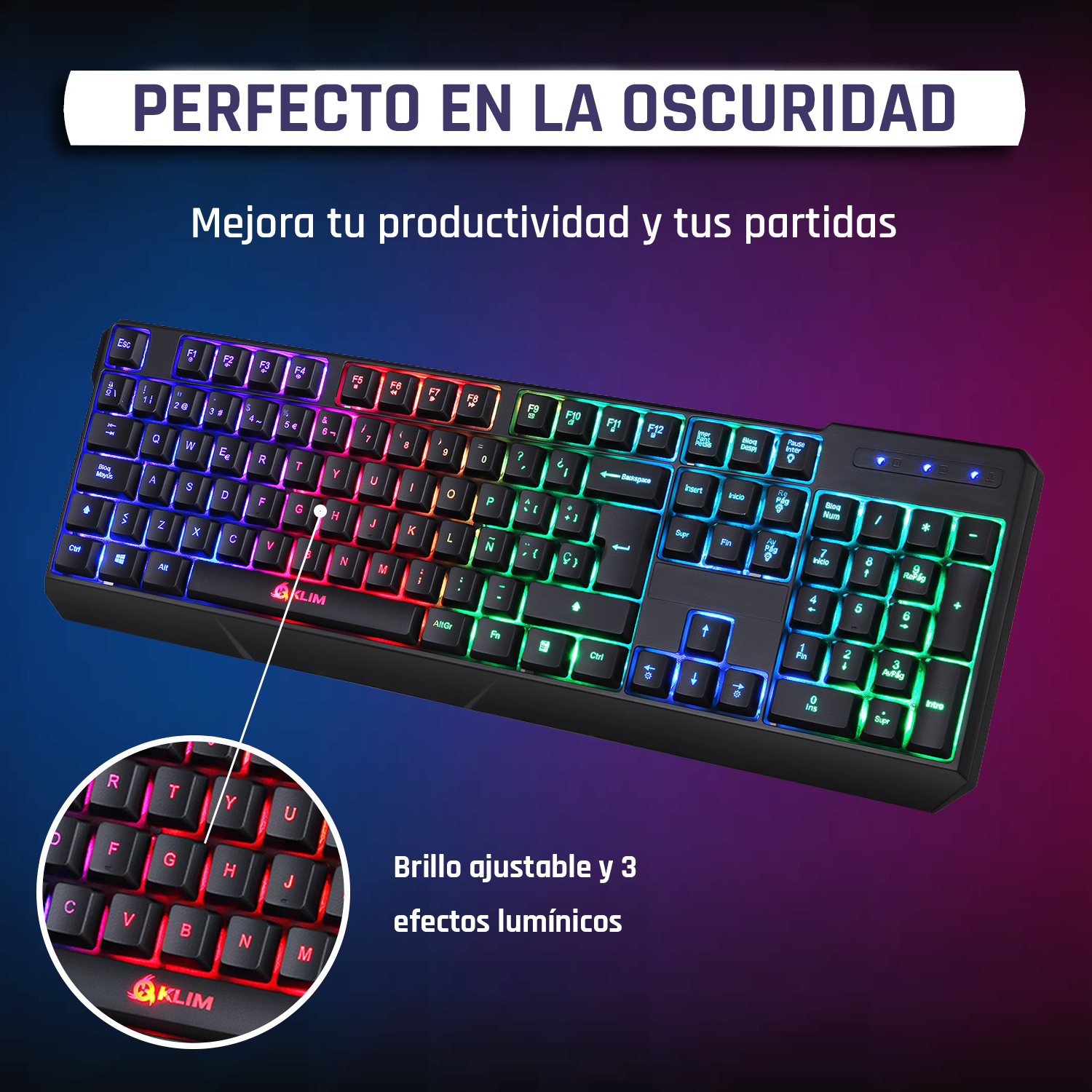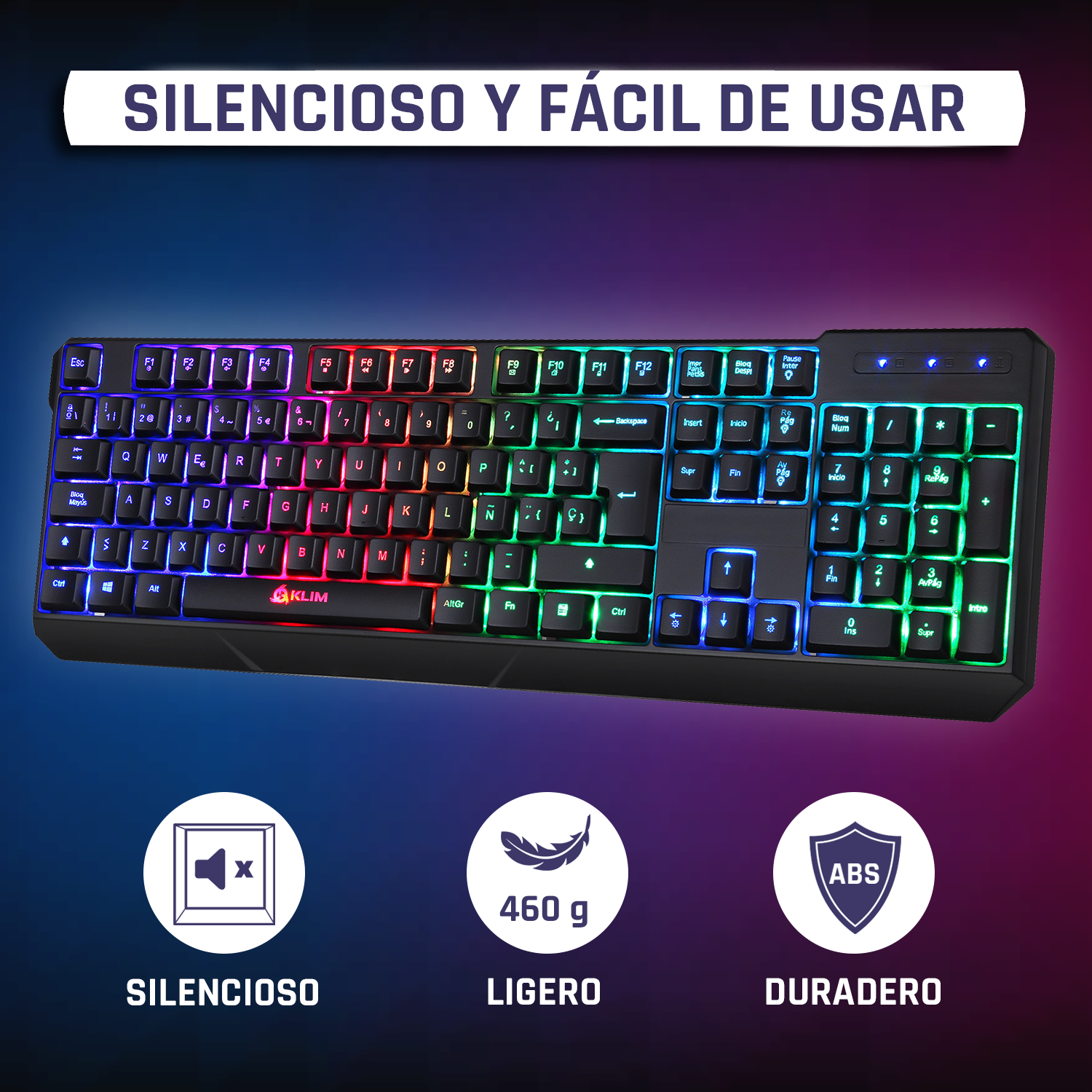 El KLIM Chroma está entre los mejores teclados de membrana disponibles en el mercado. Silencioso, duradero y cómodo, este modelo se ha fabricado para jugadores que busquen una calidad de tecleo increíble al menor coste disponible..Con una vida útil de 20 millones de pulsaciones (unos 15 años de uso), al elegir el KLIM Chroma estás comprando un teclado que ha sido fabricado para durar. Con un peso muy ligero (490 gramos), este teclado ofrece un tiempo de reacción rapidísimo de unos 2 ms. Te encantarán su brillante retroiluminación de teclas, muy práctica para jugar por la noche. El KLIM Chroma es el producto más vendido en Amazon Europa..Ha sido capaz de seducir también a las personas no jugadoras gracias a su estética y fiabilidad. También es un producto excelente para usar en la oficina. ¡Su diseño lo hace el regalo perfecto!