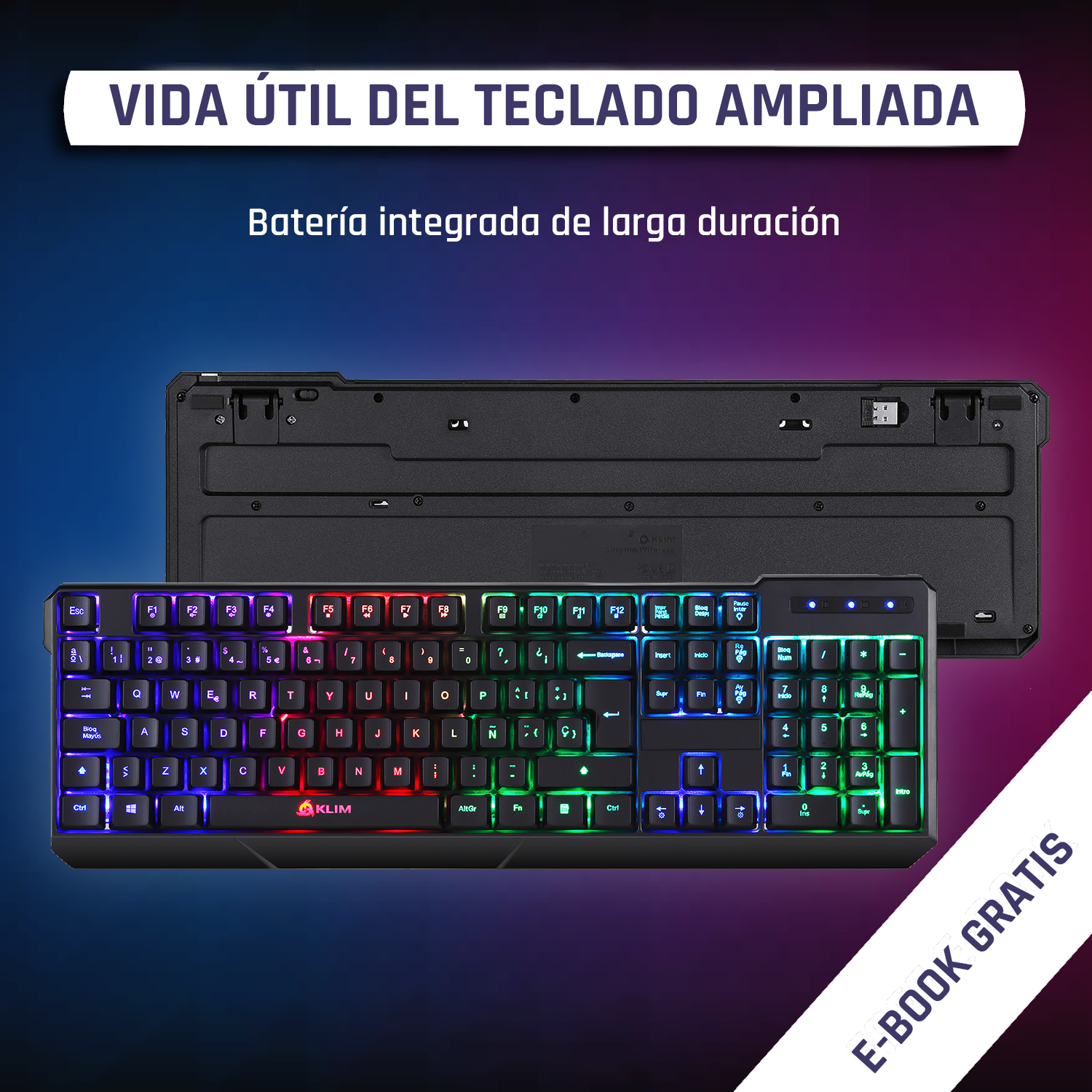 Opiniones KLIM Chroma Wireless - Teclado inalámbrico gaming ESPAÑOL + Teclado gaming ligero, duradero, resiste al agua, ergonómico, silencioso + Teclado Gamer PC PS4 Xbox One Mac + Negro