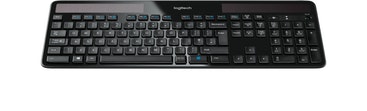 Logitech K750. Formato del teclado: Estándar. Estilo de teclado: Derecho. Tecnología de conectividad: Inalámbrico, Interfaz del dispositivo: RF Wireless, Diseño de teclado: QWERTZ, Teclado, cantidad de teclas: 104, Uso recomendado: Universal. Color del producto: Negro