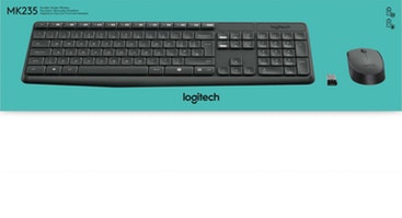 Logitech MK235. Formato del teclado: Estándar. Estilo de teclado: Derecho. Tecnología de conectividad: Inalámbrico, Interfaz del dispositivo: RF Wireless, Diseño de teclado: QWERTY, Teclado, cantidad de teclas: 100, Uso recomendado: Universal. Color del producto: Black. Ratón incluido