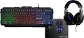 ¡TODO LO NECESARIO PARA JUGAR!\n\nEste combo agrupa un ratón, un teclado, unos auriculares + micrófono y una alfombrilla que combinan perfectamente para ser lo más eficaz posible en todos los juegos. Todos los periféricos reunidos en un solo combo.\n\nLOS AURICULARES IDEALES PARA EMPEZAR\nEstudiado para responder a las necesidades de los neófitos en gaming, el KORP#100 refuerza la inmersión en el juego, especialmente los FPS y los de simulación. El sonido X-Tra bass del KORP#100 es ultrainmersivo ya que cada acción queda amplificada por el sistema de bajos.\n\nSu micro ajustable, su diadema regulable y su mando integrado en el vable garantizan confort y practicidad. \n\nUN TECLADO MULTICOLORE CONCEBIDO PARA GANAR\nEste teclado retroiluminado te ofrece una óptima calidad de tecleo. Podrás llevar a cabo multitud de disparos con precisión. Las 6 teclas anti-ghosting permiten evitar acciones no intencionadas cuando se pulsan varias teclas simultáneamente.\n\nUN RATÓN RETROILUMINADO ULTRAREACTIVO\nEl KULT#110 ha sido concebido para proponer el mejor equilibrio posible entre el confort y el rendimiento. Resulta ideal para sesiones de juego largas. Su forma redondeada garantiza un excelente agarre en mano. Al estar retroiluminado y llevar 6 botones, este ratón es perfecto para acumular victoria. \n\nUN PAD ANTIDESLIZANTE IDEAL\nEste pad ofrece un deslizamiento perfecto gracias a su textura lisa en la parte superior y un grip antideslizante en la base. Será el aliado de tus gestos en cualquier circunstancia, ofreciéndote precisión y rapidez de ejecucuón.