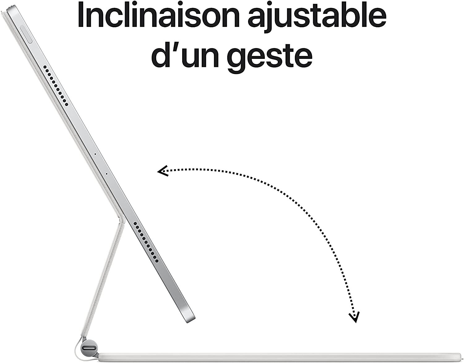Teclas retroiluminadas de tamaño estándar con mecanismo de tijera de 1 mm de recorrido para escribir de forma cómoda y silenciosa. Diseñado para los gestos Multi-Touch y el cursor en iPadOS. Ajuste preciso del ángulo de visión de la pantalla. Puerto USB-C para cargar el iPad Pro, permitiendo usar el puerto del dispositivo para otros accesorios. Al plegarse, se convierte en una funda para proteger el iPad Pro por ambos lados. .Especificaciones: .- Color Único.- Marca Apple.- Idioma Francés.- Material Other.- Nombre del modelo IPad Keyboard.- Número de teclas 64.- Dispositivos compatibles Tablet.- Tecnología de conectividad Usb c.- Dimensiones del producto: largo x ancho x alto 29.2 x 23.9 x 2.2 centímetros