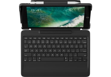 Logitech SLIM COMBO. Color del producto: Negro, Material de la carcasa: Plástico PU. Marca compatible: Apple, Compatibilidad: iPad Pro 10.5"", Diseño de teclado: QWERTY. Fuente de energía: Base. Tecnología de conectividad: Alámbrico, Interfaz del dispositivo: Smart Connector. Ancho: 184 mm, Profundidad: 27 mm, Altura: 258 mm