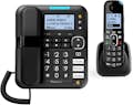 amplicomms BigTel 1580. Tipo: Teléfono DECT, Tipo de auricular: Auricular inalámbrico y con cable. Altavoz. Rango máximo en interiores: 50 m, Rango máximo en exteriores: 300 m. Identificador de llamadas. Color del producto: Negro. Número de teléfonos móviles incluidos: 2