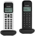 Duo teléfonos fijos inalámbricos ALCATEL D285 acabados en color blanco y negro, teléfonos inalámbricos sencillos y elegantes, función de manos libres, agenda de 50 nombres y números.