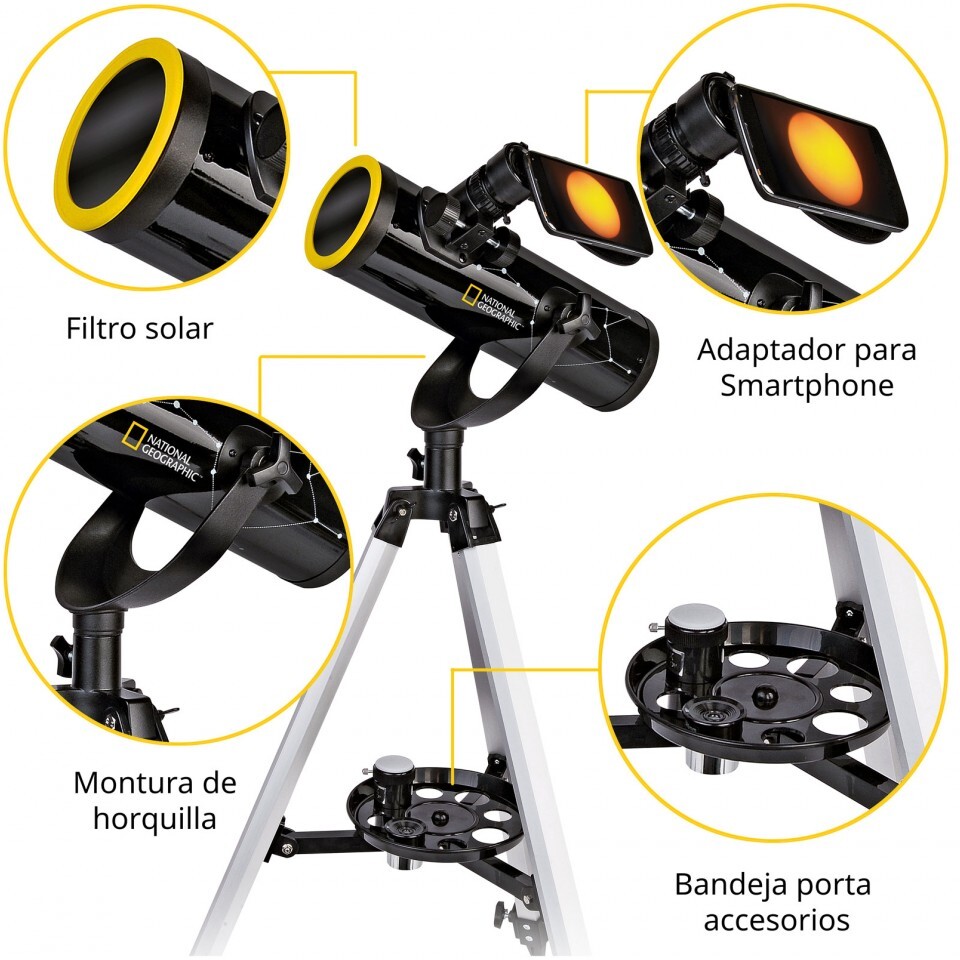 Opiniones National Geographic Telescopio 76/350 con filtro solar y soporte para Smartphone