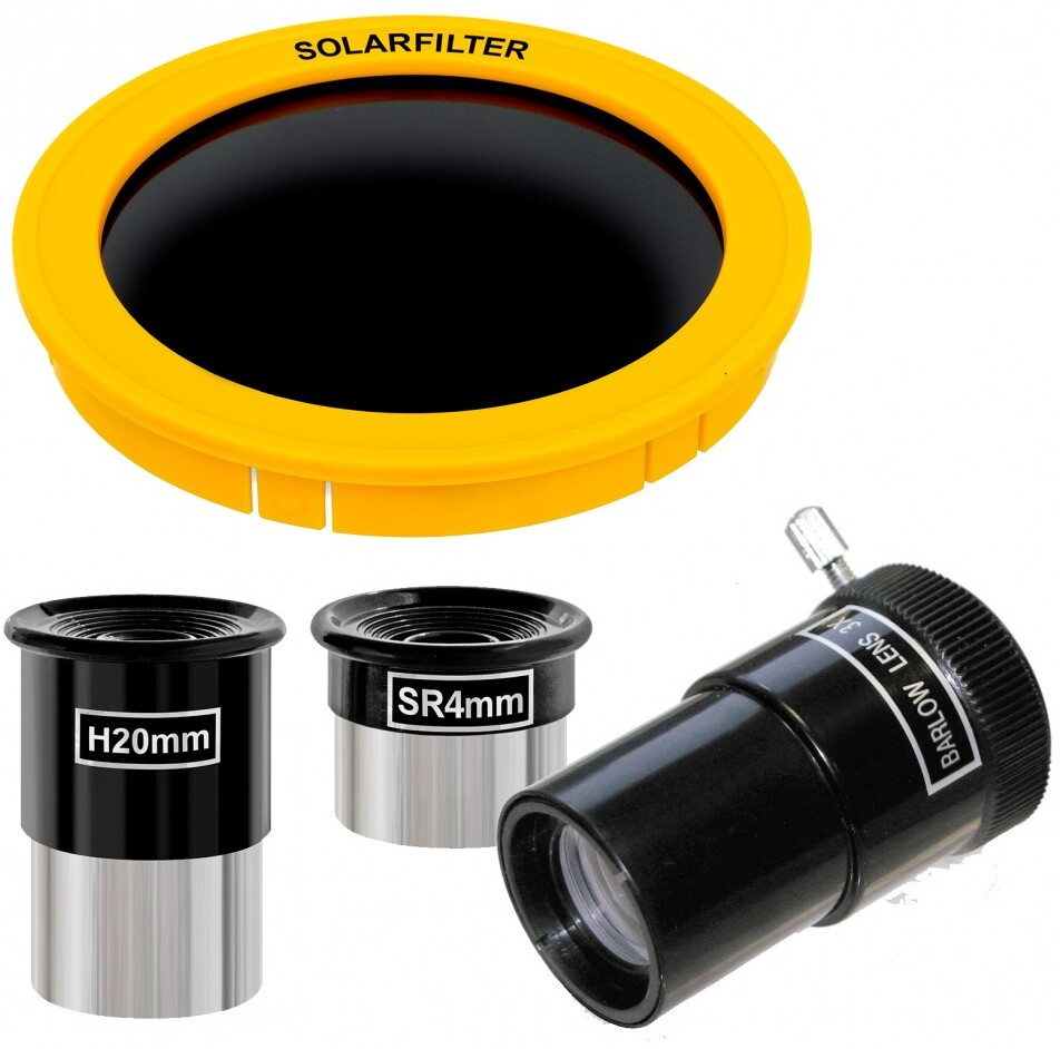 Nunca antes había sido tan fácil, económico y, sobre todo, seguro, con un telescopio realizar observaciones del cielo nocturno y también solares. Ahora podrá realizarlo gracias al filtro solar especialmente diseñado para este telescopio. El folio especial introducido en su interior protege al ojo durante las observaciones solares de manera eficaz y fiable de la luz infrarroja, ultravioleta y visible. Solo permite la entrada de la luz inocua y tenue del sol no perjudicial para nuestros ojos obteniendo imágenes increíbles en su ocular.