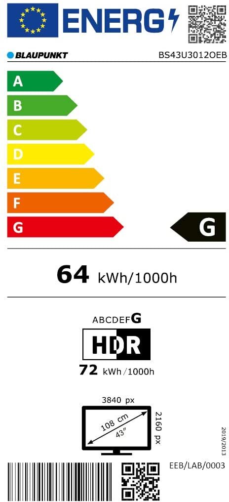 Opiniones Blaupunkt BS43U3012OEB Televisor 43 Pulgasas 4K Ultra HD UHD HDR10 + HLG Negro