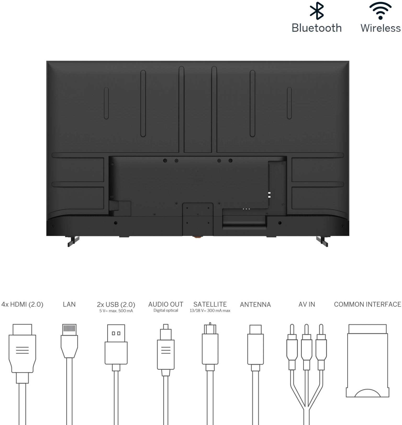 Thomson 65UA5S13. Diagonal de la pantalla: 165,1 cm (65""), Resolución de la pantalla: 3840 x 2160 Pixeles, Tipo HD: 4K Ultra HD, Tecnología de visualización: LED, Forma de la pantalla: Plana, Tipo de retroiluminación LED: Direct-LED. Smart TV. Relación de aspecto nativa: 16:9. Formato de señal digital: DVB-T2, DVB-S, DVB-C, DVB-S2, DVB-T. Wifi, Ethernet. Color del producto: Negro