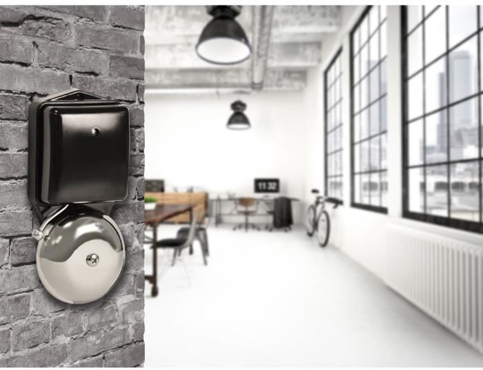 Carillón electromecánico con cable de 'diseño industrial' de 12V - 2 cables - 1 timbre - Transformador remoto suministrado - Timbre de 80 dB.