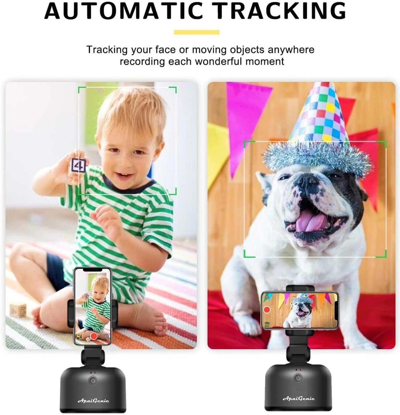 Tu camara personal.Portátil, todo en uno, con rotación de 360º, detección automática de cara y detección de objetos. Perfecto para crear vlogs, tiktok, videos de rendimiento y más!.Hay dos modos: ""Photo"" & ""Live"". El teléfono se ejecuta 360 ° para seguir y mantenerlo cantado en el marco al grabar video, tomando imágenes o transmisión en vivo, tome selfies, todo esto sin pedir ayuda..Velocidad y gentleza.La velocidad máxima de disparo puede alcanzar hasta 180º por segundo sin ningún retardo, mientras que el diseño anti-vibración garantiza una filmación suave..Fácil de operar.(1) Instale 3 baterías alcalinas de tamaño AA.(2) descargar la aplicación ""apai genie"".(3) Conexión de la ubicación del teléfono móvil y Bluetooth (no hay necesidad de parar manualmente Bluetooth).(4) Presione el botón POWER para abrir el dispositivo, abra la aplicación ""APAI GENIE"", y elija el modo, esto estará encendido automáticamente. La luz roja, siendo larga, significa en el trabajo ... acompañará su movimiento. No mueva la cara / objeto demasiado rápido..Brotes inteligentes.Coloque la postura como quiera, y comience a tomar imágenes o videos automáticamente. También está el modo de disparo de dos personas, lo que le permite congelar y capturar momentos íntimos..Características.1. Rotación de 360º..2. Detección de objetos.3. Evaluación facial.4. Llamada de video.5. Multi-Stream Live.6. Disparo inteligente.7. Seguimiento inteligente.8. Cambio horizontal y vertical..9. Vlog Wizard Artifact.10. Soporte para el conjunto triple..11. Color: Gris.12. Soporta iOS y Android