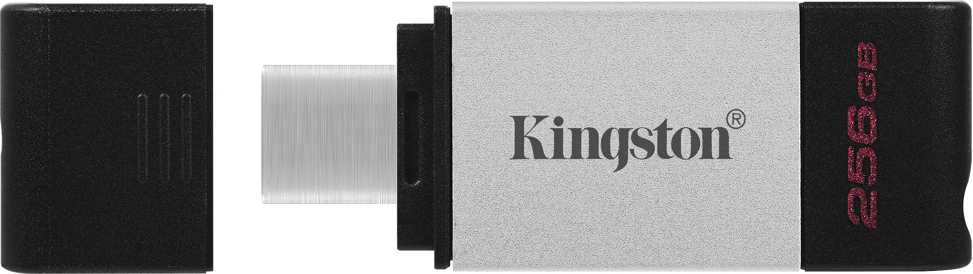 Almacenamiento portátil de alta velocidad para toda clase de dispositivos Tipo C\n\nDataTraveler® 80 de Kingston es una unidad Flash USB de alto rendimiento compatible con equipos de sobremesa, portátiles, teléfonos inteligentes y tabletas Tipo C sin necesidad de adaptador. Con velocidades de transferencia extremadamente rápidas —200 MB/s en lectura y 60 MB/s en escritura**—, la unidad DataTraveler® 80 posibilita transferencias de archivos rápidas y convenientes. Por su diseño compacto con capuchón, con una resistente carcasa y llavero, es ideal para el almacenamiento portátil.\n\n- Diseñada para el uso con dispositivos USB-C\n- Velocidades de hasta 200 MB/s en lectura**\n- Resistente y ligera\n- Capacidades de hasta 256 GB*\n\n*Algunas de las capacidades enumeradas en un dispositivo de almacenamiento Flash se emplean para formatear y otras funciones, por lo cual no están disponibles para el almacenamiento de datos. Por este motivo, la capacidad real de almacenamiento de datos es inferior a la indicada en los productos. Consulte información más detallada en la Guía de memoria Flash de Kingston, en kingston.com/flashguide.\n** La velocidad puede variar en función de las características del equipo huésped, de los programas y del uso.