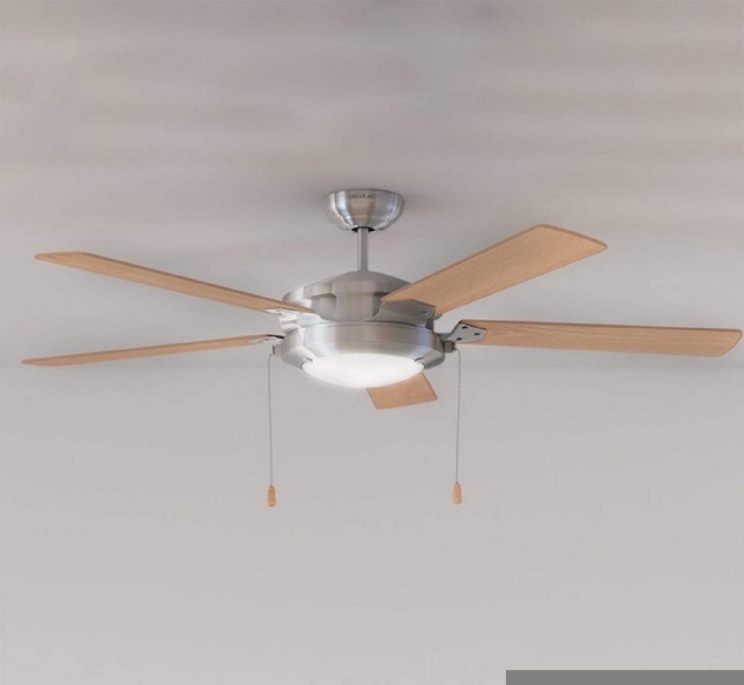 Gran potencia de 60 W, con motor de cobre de alto rendimiento que aumenta el caudal de aire y la sensación de frescor, con la máxima fiabilidad y durabilidad..Amplío diámetro de 52 pulgadas (132 cm) que aumentan la cobertura de aire fresco en la estancia..El ventilador integra una lámpara LED que lo convierte en un práctico equipo híbrido. Consigue luz y un ambiente perfecto en tu hogar de la forma más eficaz y asequible. Selecciona entre sus 3 colores disponibles..Podrás elegir entre 3 velocidades de funcionamiento (Low, Medium y High), adecuando la intensidad del caudal de aire a tus necesidades..Sistema formado por 5 aspas totalmente innovadoras y aerodinámicas, diseñadas para maximizar el flujo de aire y garantizar un caudal constante de aire fresco..Dispone de un diseño cuidado con líneas elegantes, adaptándose perfectamente a la decoración de tu hogar. Además, sus palas son totalmente reversibles y te permiten elegir en todo momento entre sus dos opciones..El ventilador dispone de un sistema de inversión de giro del motor para realizar la función verano/invierno. Mediante un conmutador se selecciona el sentido de rotación de las aspas, en un sentido en verano para generar una agradable brisa y en sentido contrario en invierno para impulsar el aire caliente concentrado en el techo hacia el suelo, perfecto para complementar tu sistema de calefacción. .Fácil manejo mediante interruptor de cadena. Controla todas las funciones del ventilador de la forma más práctica y accesible.