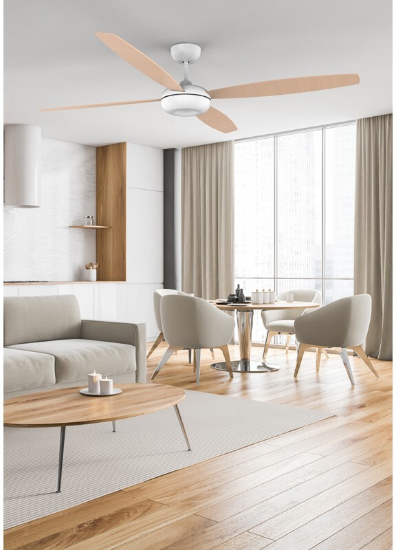 Leds C4 Ventilador Kudari Blanco Madera clara Blanco