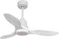 El motor de corriente continua TE4 en blanco permite instalaciones en techos de hasta 27º de inclinación y se sirve con dos tijas para que se instale a la altura adecuada (13.5 cm y 25 cm). Es perfecto para 2 o 3 aspas, pues dispone de una función de auto equilibrado. Además admite kit de luz. Este modelo es reversible, desestratificador de aire, de forma que en invierno podrás invertir sus palas para que su movimiento desplace el aire caliente hacia abajo, actuando como complemento de tu sistema de calefacción y favoreciendo un consumo optimizado. Además incluye un termostato en su base, por lo que lo podrás programar para que el ventilador funcione según la temperatura ambiente. .Entre su multitud de ventajas incluye 6 velocidades, temporizador (8h) y posibilidad de control remoto mediante mando a distancia, mando de pared y conexión WiFi con la aplicación Tuya Smart, para poder utilizar el ventilador desde cualquier dispositivo móvil. Cuenta también con sistema HYPERSILENCE, una tecnología súper silenciosa que nunca sobrepasa los 38dB a velocidad 3 y que permite utilizar el ventilador por las noches o en momentos de descansos, ofreciendo un rendimiento muy silencioso y con un consumo máximo de 38 W..Como extra, tiene Función Memoria que permite guardar la configuración utilizada, tanto en velocidad como en luz, de modo que al apagar el ventilador queda guardada y al volver a encenderlo se inicia con la misma configuración..Las palas aerodinámicas de madera balsa maciza otorgan al ventilador una gran ligereza. Han sido artesanalmente tratadas para estar equilibradas y no producir ningún tipo de vibración. Este modelo de 3 aspas acabadas en madera blanca tiene un diámetro de 106 cmEl kit de iluminación L1WIS optimizará todas las posibilidades de su ventilador. Este formato de acabado blanco ofrece 3 colores diferentes.
