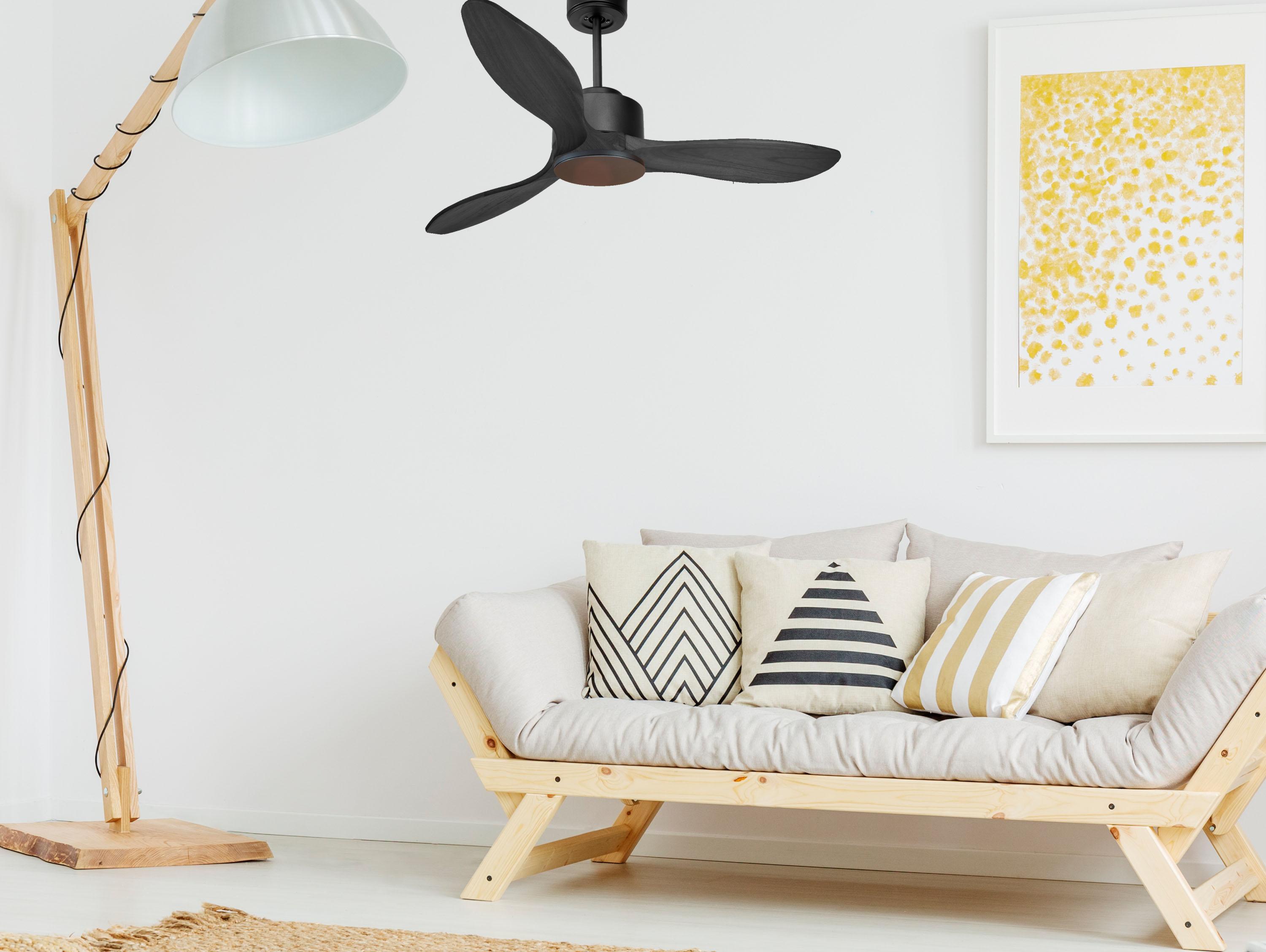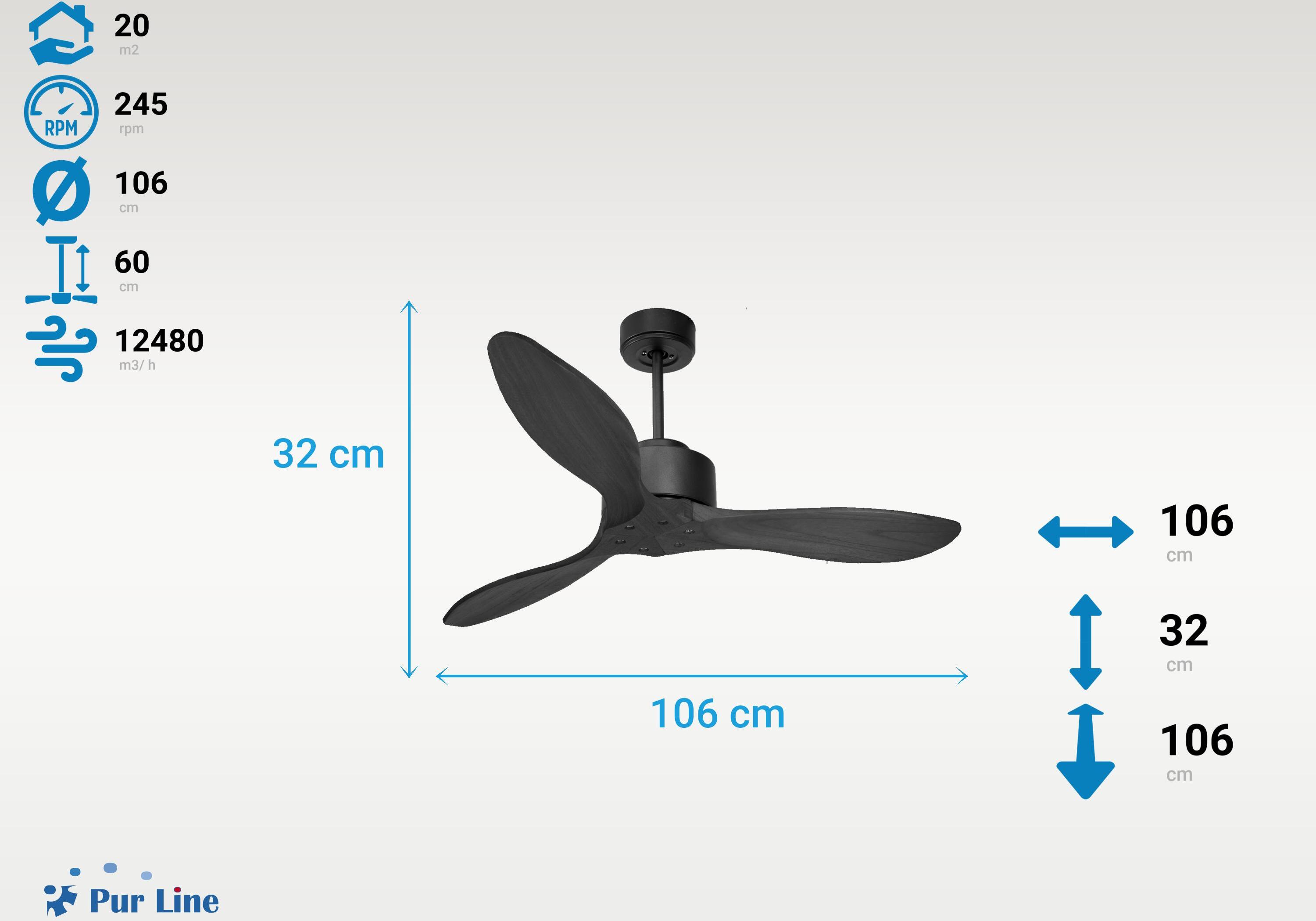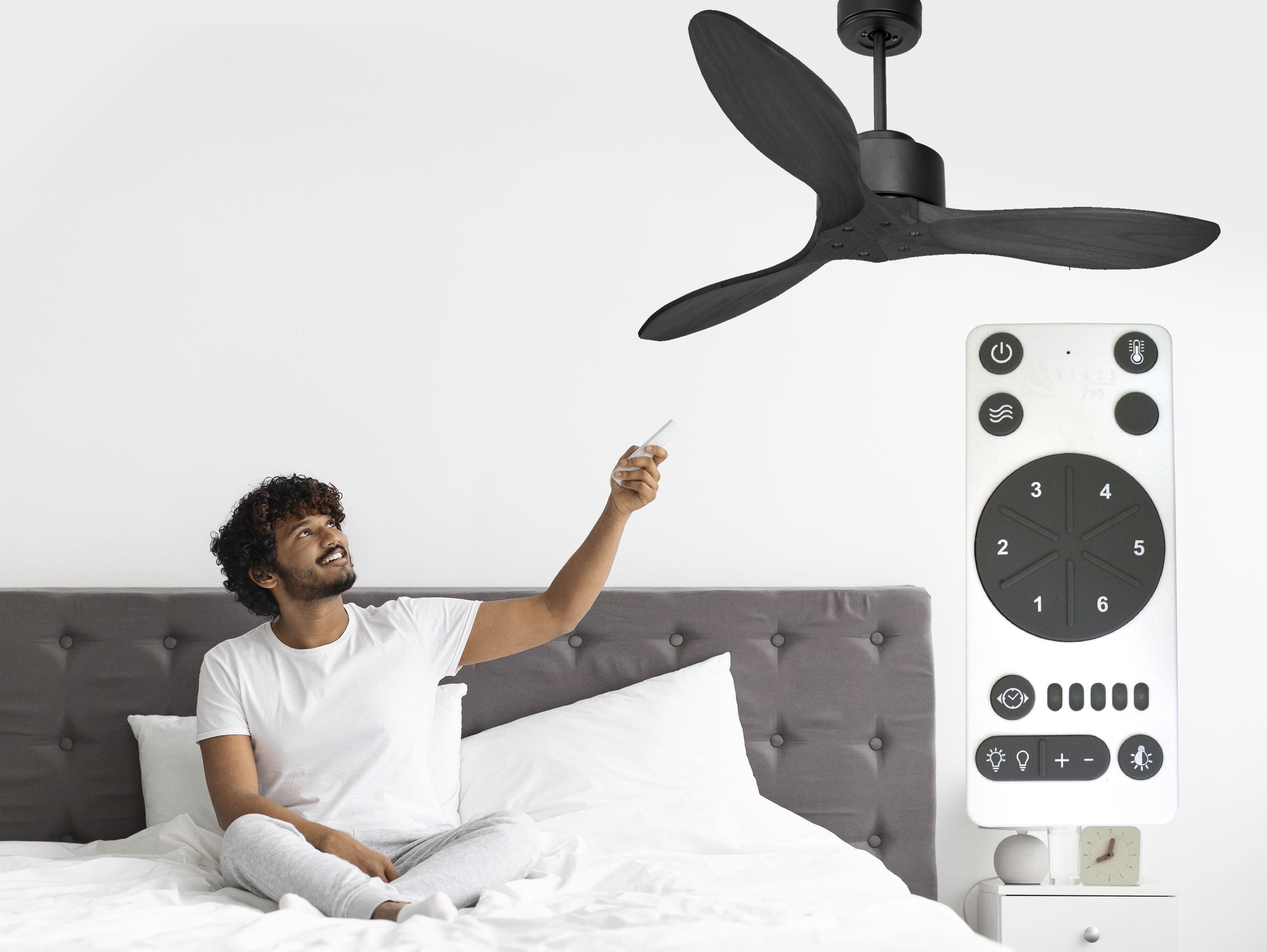 El motor de corriente continua DC3 SLIM en plata permite instalaciones en techos de hasta 27º de inclinación y se sirve con dos tijas para que se instale a la altura adecuada (13.5 cm y 25 cm). Es perfecto para 2 o 3 aspas, pues dispone de una función de auto equilibrado. Además admite kit de luz. Este modelo es reversible, desestratificador de aire, de forma que en invierno podrás invertir sus palas para que su movimiento desplace el aire caliente hacia abajo, actuando como complemento de tu sistema de calefacción y favoreciendo un consumo optimizado. Además incluye un termostato en su base, por lo que lo podrás programar para que el ventilador funcione según la temperatura ambiente.Entre su multitud de ventajas incluye 6 velocidades, temporizador (8h) y posibilidad de control remoto mediante mando a distancia, mando de pared y conexión WiFi con la aplicación Tuya Smart, para poder utilizar el ventilador desde cualquier dispositivo móvil. Cuenta también con sistema HYPERSILENCE, una tecnología súper silenciosa que nunca sobrepasa los 38dB a velocidad 3 y que permite utilizar el ventilador por las noches o en momentos de descansos, ofreciendo un rendimiento muy silencioso y con un consumo máximo de 38 W.Como extra, tiene Función Memoria que permite guardar la configuración utilizada, tanto en velocidad como en luz, de modo que al apagar el ventilador queda guardada y al volver a encenderlo se inicia con la misma configuración.Las palas aerodinámicas de ABS otorgan al ventilador una gran ligereza. Han sido artesanalmente tratadas para estar equilibradas y no producir ningún tipo de vibración. Este modelo de 3 aspas en color marrón tiene un diámetro de 132 cm y alcanza gran velocidad.