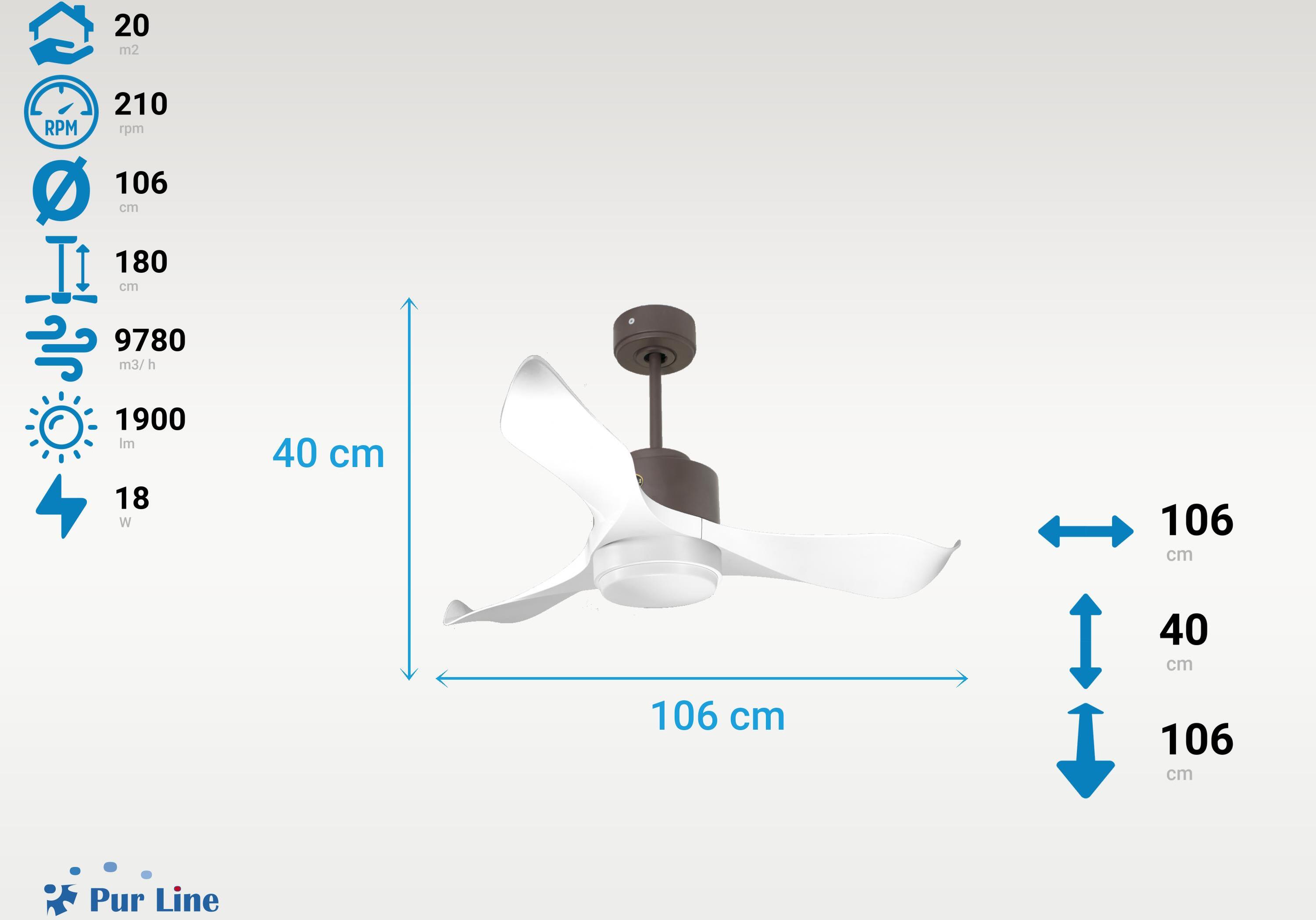 Purline Ventilador de techo Wifi Motor DC Mando a Distanci