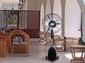 ¿Alguna vez has pensado en un sistema de climatización para tu hogar accesible, sencillo y cómodo? Este nebulizador de Purline es la solución para sobrevivir al calor, pues funciona gracias a una avanzada y silenciosa tecnología de 200W que pulveriza el agua y la convierte en una fina y agradable bruma que refrescará el ambiente rápidamente, sin compresores ni refrigerantes químicos, totalmente ecológico, bueno para tu salud y con un consumo reducido.El MISTY 12 es un nebulizador industrial de gran diámetro (65cm) que tiene 3 velocidades y un movimiento de oscilación de 90º que favorece la óptima distribución del aire, con un alcance de hasta 10m. Entre sus extras incluye la posibilidad de regular la altura de su cabezal y ajustar la intensidad de la rociada.Fabricado en metal con detalles en negro y con un motor de cobre, se compone de un cuerpo alargado que sostiene una cabeza con 3 aspas de aluminio. Su tamaño (LxPxH: 65 x 60 x 200 cm), su peso (27kg) y su depósito de ABS (49L) lo hacen ideal para grandes estancias, además sus ruedas te permitirán desplazarlo según tus propias necesidades.