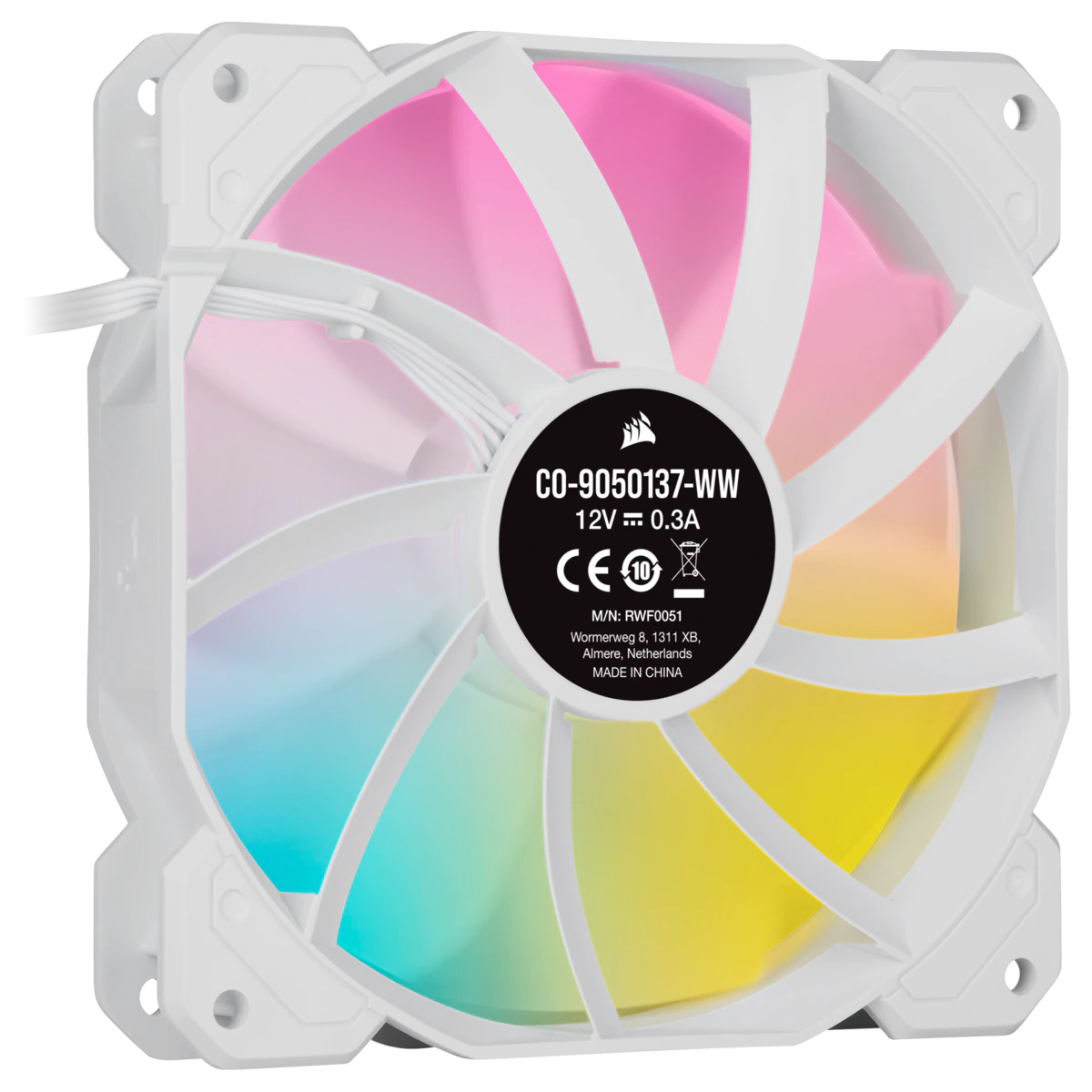 El CORSAIR iCUE SP120 RGB ELITE Performance Triple Fan Kit incluye ocho LED RGB intensos y direccionables individualmente en cada ventilador, para mejorar la brillante iluminación RGB de cualquier PC..Tecnología CORSAIR AirGuide Los ventiladores de la serie SP RGB Elite utilizan aspas antirremolinos para dirigir el flujo de aire y concentrar la refrigeración, lo que mejora la refrigeración instalada, ya sea de entrada, salida, radiadores de refrigeración líquida o disipador.,Iluminación RGB fascinante Ocho RGB LED direccionables individualmente se alinean en el concentrador de ventiladores central y se difunden hacia el exterior a través de las aspas semiopacas de los ventiladores para lograr un efecto de brillo sutil y elegante.,Configuración bajo su control Con iCUE Lighting Node CORE incluido*, puede crear vibrantes efectos de iluminación, dando vida a su sistema con iluminación RGB dinámica mediante nuestro potente software iCUE. Lighting Node Core se incluye solo en los paquetes múltiples, pero puede adquirirse por separado.,Bajo nivel de ruido, alto rendimiento: Con niveles de ruido de tan solo 7 dBA, las aspas translúcidas de los ventiladores de la SP RGB ELITE proporcionan un gran flujo de aire al tiempo que permiten que su iluminación RGB destaque.Especificaciones: .Marca: Corsair . | Nivel de ruido: 18 dB . | Número de modelo del producto: ?CO-9050137-WW . | Voltaje de la batería de litio: ?1 Voltios . | Tipo de conector de alimentación: 4 pin . | Número de tornillos: 12 . | Diámetro de ventilador: 12 cm . | Velocidad de rotación (mín.): 400 RPM . | Velocidad de rotación (máx.): 1500 RPM . | Máximo flujo de aire: 47,73 cfm . | Presión máxima de aire: 1,46 mmH2O . | Dimensiones del producto: largo x ancho x alto: 12 x 12 x 2.5 centímetros. | Peso del producto: ?377 g . | Color: ?Blanco
