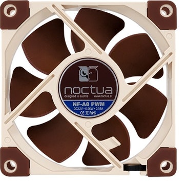 Noctua NF-A8 PWM. Adecuado para: Carcasa del ordenador, Tipo: Enfriador, Diámetro de ventilador: 8 cm. Color del producto: Beige, Marrón. Fuente de alimentación: 0,96 W, Voltaje: 12 V, Máxima corriente: 0,08 A. Ancho: 80 mm, Profundidad: 80 mm, Altura: 25 mm
