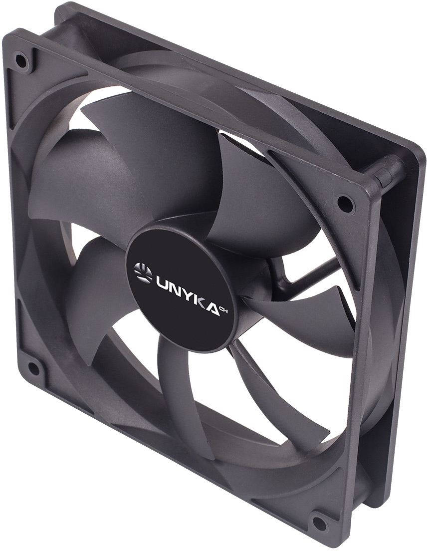 UNYKAch 51800. Tipo: Ventilador, Diámetro de ventilador: 12 cm, Velocidad de rotación (máx.): 2000 RPM, Nivel de ruido (alta velocidad): 19 dB. Ancho: 120 mm, Profundidad: 25 mm, Altura: 120 mm. Color del producto: Negro