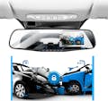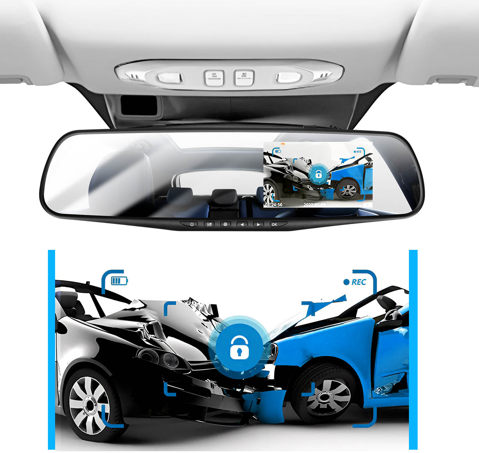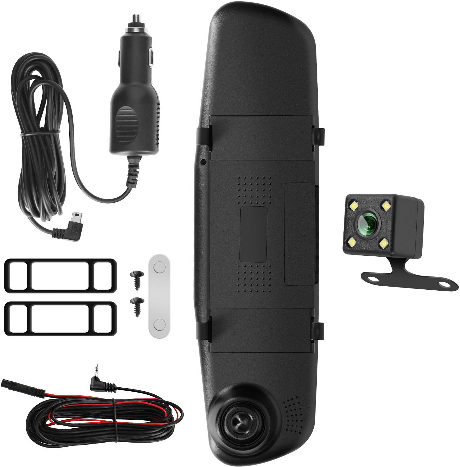 Cámara de visión trasera. Doble cámara HD: delantera (170°) / trasera (120°). Pantalla TFT de 4"". Visión nocturna WDR. Grabación en bucle. Sensor G. Detección de movimiento. Cámara resistente al agua. Micrófono incorporado. Salida USB 2.0 y AV.Características y Puntos fuertes: El espejo retrovisor con Dashcam captura cada momento de tu conducción con claridad Full HD 1080PPantalla TFT de 4 pulgadas con visualización clara y brillante para una visión cómodaDos cámaras para una visión completa de 170° hacia delante y 120° hacia atrásGran apertura y amplio rango dinámico para obtener imágenes nítidas, incluso de noche