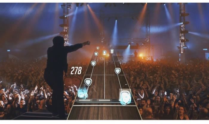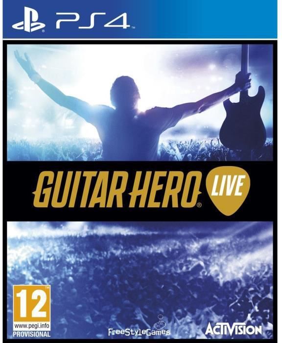 Juego musical en PS4. ¡Guitar Hero ha vuelto más real que nunca! Guitar Hero Live revive la legendaria franquicia de juegos de música con dos nuevos modos de juego y un controlador de guitarra completamente nuevo. ¡Vive la experiencia del escenario en primera persona con un público que reacciona en directo a tu actuación!
