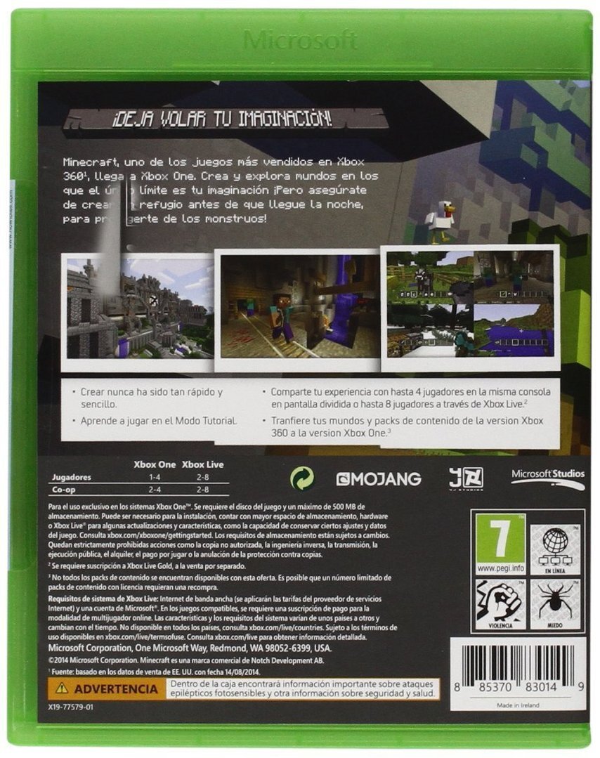 Minecraft Xbox One Edition (de segunda mano muy bueno) .¡Deja volar tu imaginación! Crea y explora mundos en los que el único límite es tu imaginación ¡Pero asegúrate de crear un refugio antes de que llegue la noche, para protegerte de los monstruos!.Características:.Crear nunca ha sido tan rápido y sencillo..Comparte tu experiencia con hasta 4 jugadores en la misma consola en pantalla dividida o hasta 8 jugadores a través de Xbox Live..Construye mundos más grandes, con mayor distancia de dibujado y más rápidamente.