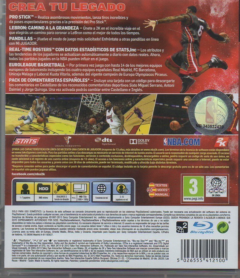 NBA 2K14 (PS3)(de segunda mano muy bueno).-De segunda mano muy bueno.-El contenido adicional puede estar descargar o no disponible!!!.Fecha de lanzamiento: 4 de octubre de 2013.Idioma: Inglés, Español.Subtítulos: Inglés, Francés, Italiano, Español