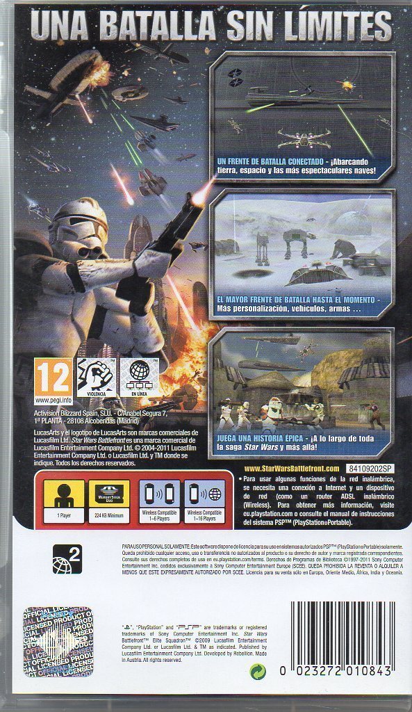 STAR WARS Battlefront: Elite Squadron (Essentials) (PSP).UNA BATALLA SIN LÍMITES.UN FRETE DE BATALLA CONECTADO - ¡Abarcando tierra, espacio y las más espectaculares naves!.EL MAYOR FRENTE DE BATALLA HASTA EL MOMENTO - Más personalización, vehículos, armas....JUEGA UNA HISTORIA ÉPICA - ¡A lo largo de toda la saga Star Wars y más allá!