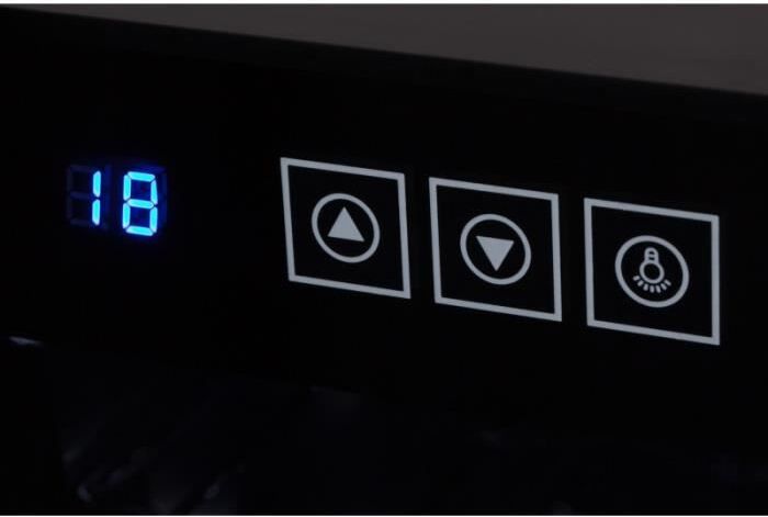 - Capacidad de 33 litros - Estantes contorneados para 12 botellas de vino - Bajo consumo de energía - Clase energética A - Funcionamiento silencioso (célula termoeléctrica) - Elegante panel de control con botones táctiles - Regulación de la temperatura