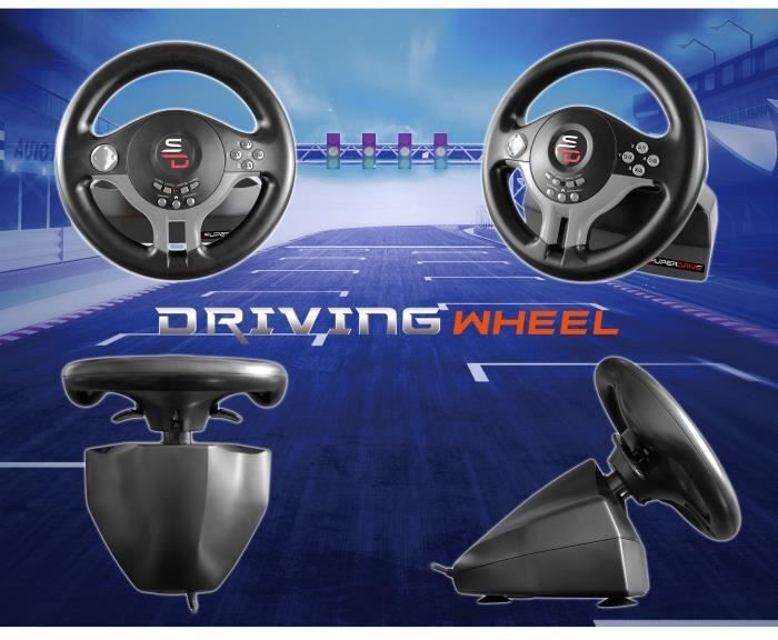 Volante cableado, con giro de 180°. Equipado con ventosas de fijación. Se entrega con 1 juego de bielas con 2 pedales. 2 levas de cambio. Ajuste de sensibilidad. ¡Con Driving Wheel universal vive una experiencia de carreras inmersiva por el precio de un controlador!