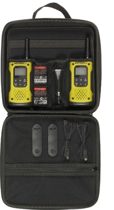 - Funciones walkie-talkieAlarma de batería baja, Autobusqueda de canal, Bloqueo de teclado, Botón de emergencia, Escáner de canales, Flota en el agua, Linterna, Manos libres, Vibración, VOX