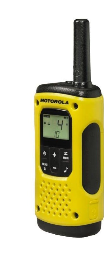 Motorola TLKR T92 H2O. Cantidad de canales: 8 canales, Alcance máximo: 10000 m. Tecnología de batería: Níquel-metal hidruro (NiMH), Autonomía: 16 h. Peso: 233 g, Dimensiones (Ancho x Profundidad x Altura): 61 x 38 x 178 mm