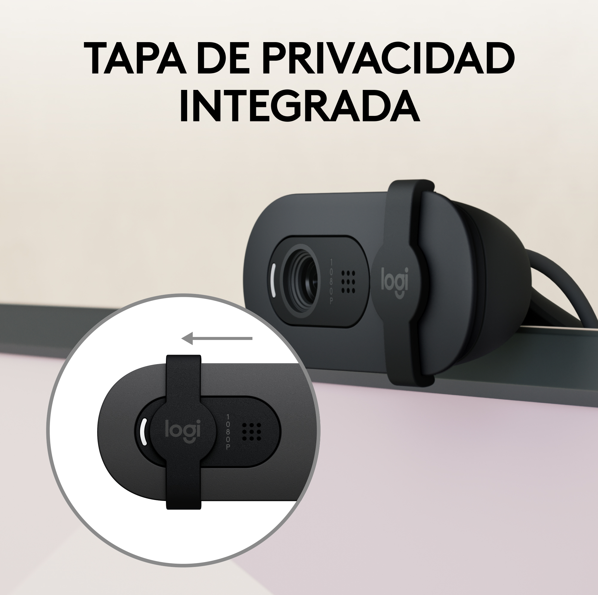 Logitech Brio 100. Megapixeles: 2 MP, Máxima resolución de video: 1920 x 1080 Pixeles, Tipo de cámara HD: Full HD. Interfaz: USB, Color del producto: Grafito, Tipo de montaje: Clip/Soporte. Sistema operativo Windows soportado: Windows 10, Windows 11, Sistema operativo MAC soportado: Mac OS X 10.15 Catalina, Mac OS X 10.15.3 Catalina, Mac OS X 11.0 Big Sur, Mac OS X 12.0 Monterey,..., Otros sistemas operativos soportados: ChromeOS. Certificados de sostenibilidad: CarbonNeutral, Forest Stewardship Council (FSC). Ancho: 72,9 mm, Profundidad: 66,6 mm, Altura: 31,9 mm