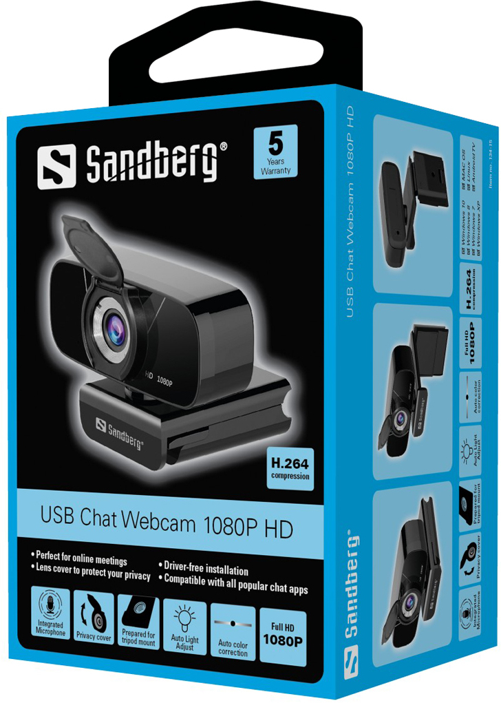 Sandberg USB Chat Webcam 1080P HD te ofrece una imagen nítida y definida gracias a la resolución Full HD 1080P. Funciona al instante sin instalación del controlador. Además la cámara cuenta con un micrófono.
