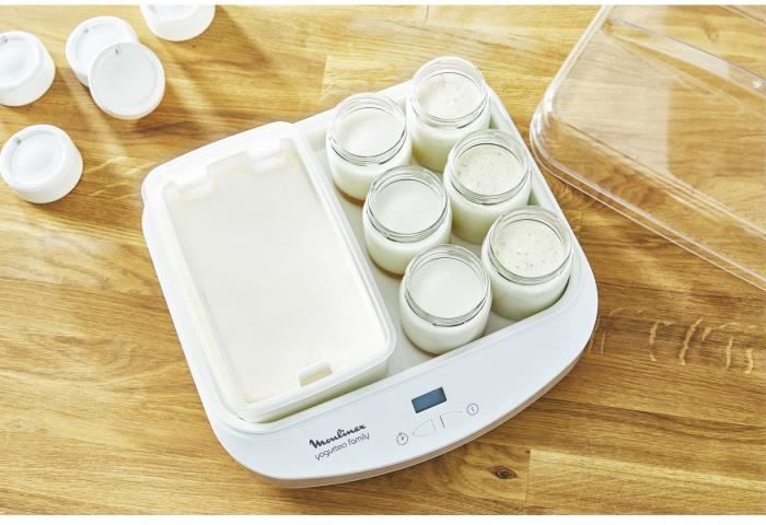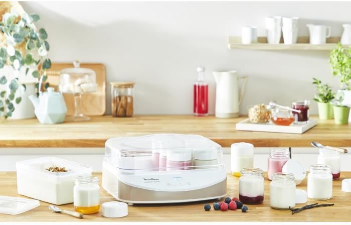 Yogures caseros que se pueden personalizar con fruta fresca, muesli, semillas o miel. Con la yogurtera Moulinex Yogurteo Family, prepara yogures y requesón 100% naturales para toda la familia. Fácil de usar con frascos que tienen indicadores de fecha en las tapas.